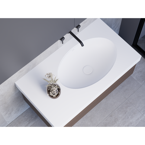 Lavabo de baño ovalado de superficie sólida respetuoso con el medio ambiente, lavabo duradero debajo de montaje en material ecológico, 1 unidad
