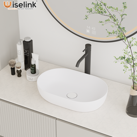 Wiselink-Lavabo de baño montado en superficie sólida, hecho a mano, piedra artificial, material ecológico, duradero