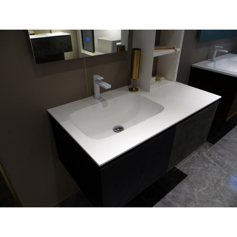 Fregadero de lavabo de baño integrado de superficie sólida, encimera de diseño único con material de piedra artificial ecológico